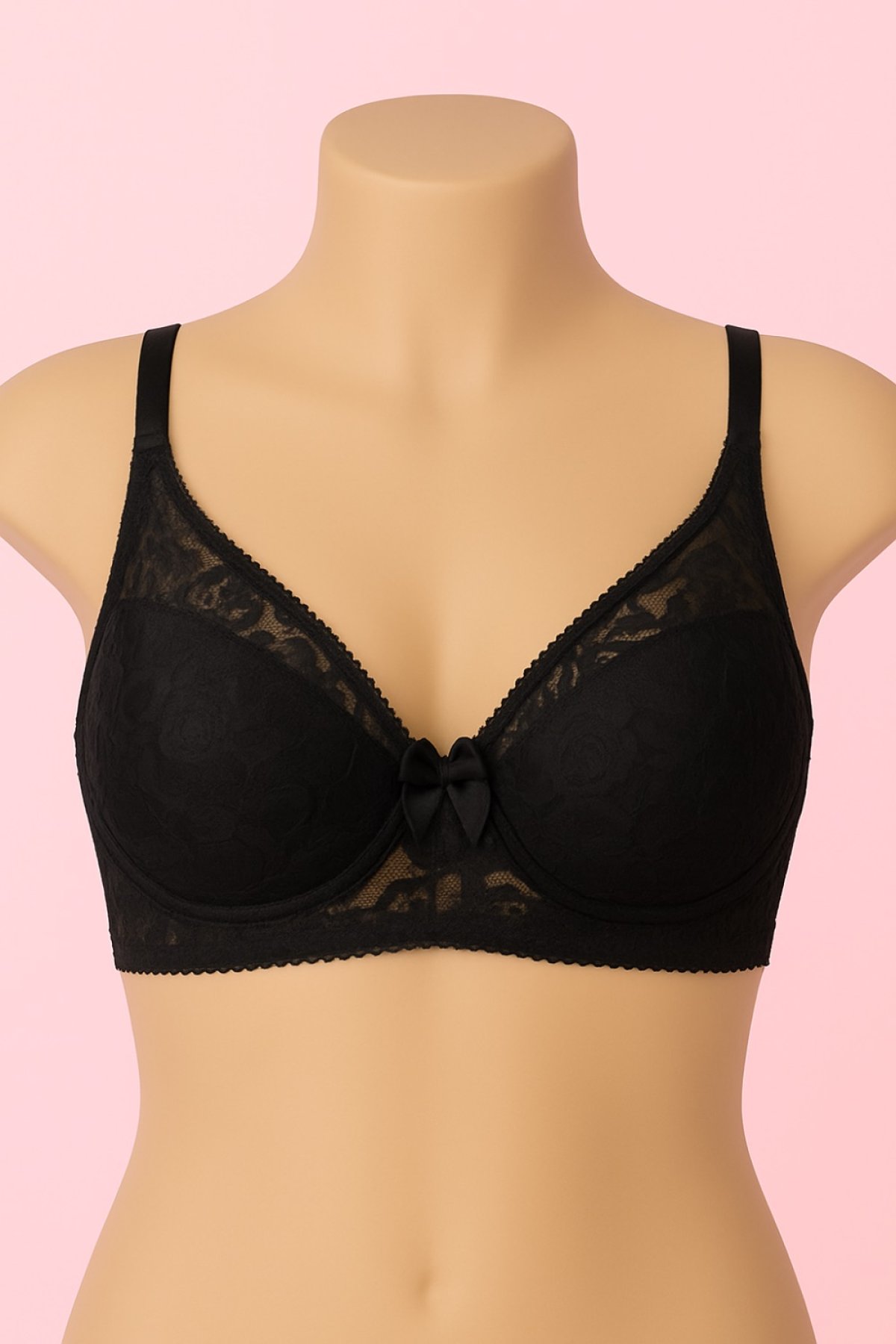Delicado e sofisticado, este sutiã foi desenvolvido em renda floral transparente, que traz charme e feminilidade para o dia a dia. O acabamento em renda trabalhada realça cada detalhe da peça, enquanto o laço de cetim no centro adiciona um toque romântico e elegante.