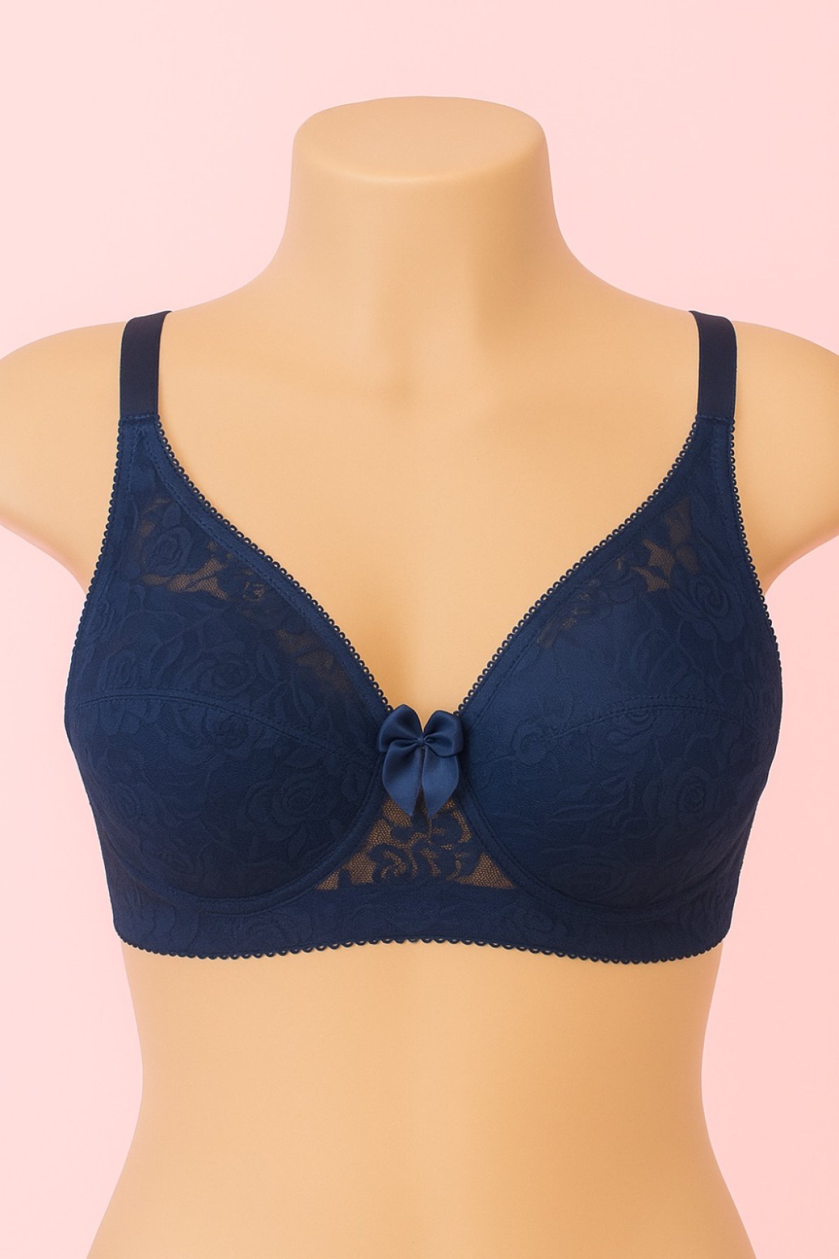 Delicado e sofisticado, este sutiã foi desenvolvido em renda floral transparente, que traz charme e feminilidade para o dia a dia. O acabamento em renda trabalhada realça cada detalhe da peça, enquanto o laço de cetim no centro adiciona um toque romântico e elegante.